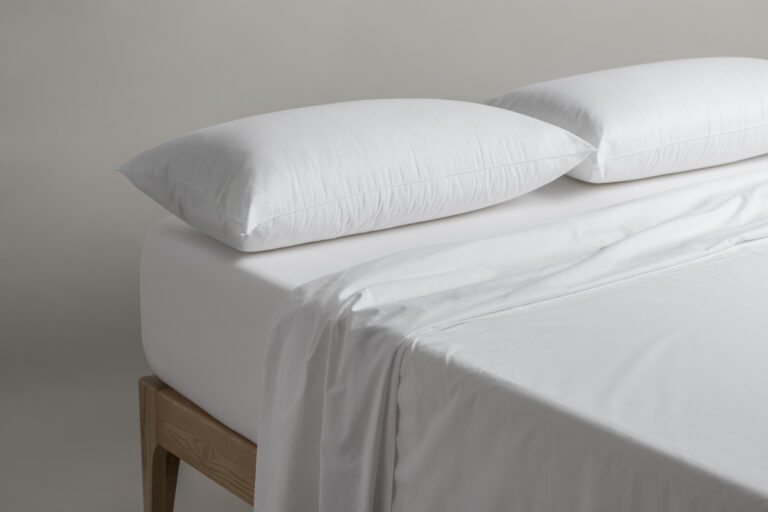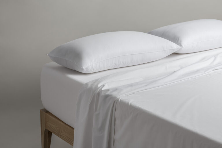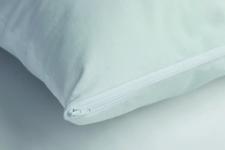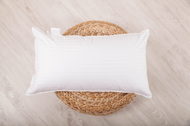 Almohada de fibra reciclada con una funda que incorpora el tratamiento antiácaros Acarsan Natural con extractos vegetales.