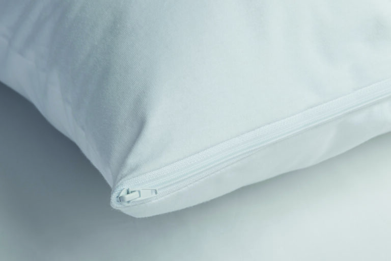 Funda de almohada impermeable y transpirable con lámina de poliuretano, que actúa como barrera antichinches. Cierre con cremallera.
