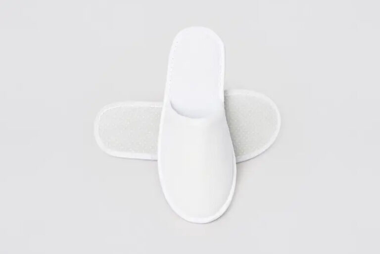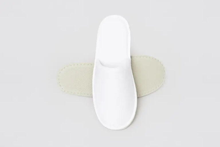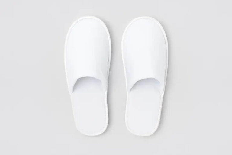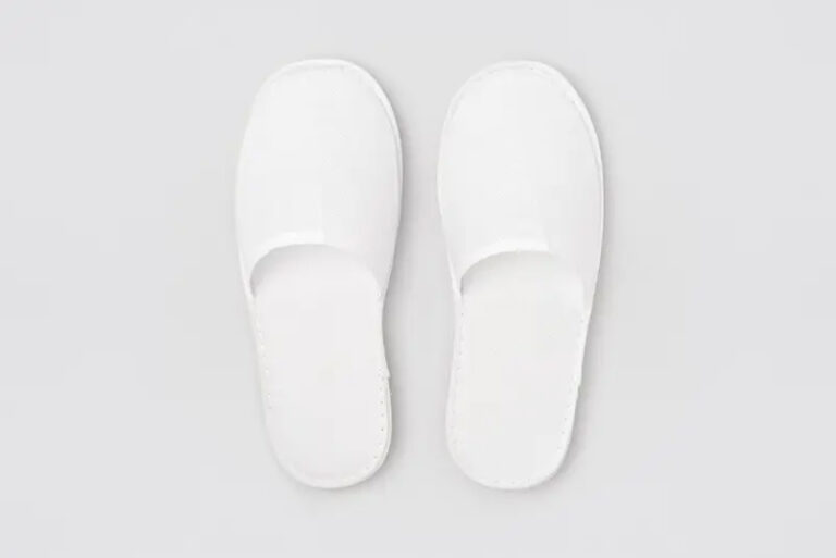 Las zapatillas de hotel S-Basic en clásico color blanco destacan por su diseño sencillo, atemporal y su gran comodidad. Gracias a su formato cerrado, resultan fáciles de llevar y transmiten a los huéspedes una sensación de limpieza e higiene – perfectas para hoteles, habitaciones de invitados o eventos. Con una longitud práctica de 28,2 cm, son un modelo unisex adecuado para diferentes tallas de pie. El tejido no tejido ligero aporta comodidad al caminar, mientras que la suela con pequeños puntos es especialmente indicada para suelos con moqueta. Además, el embalaje con banda de papel evita el plástico y apuesta por la sostenibilidad.