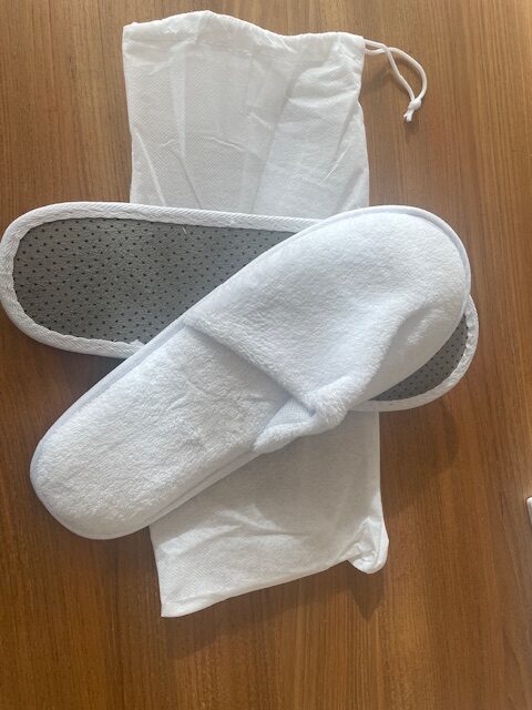 Las P-Andy Velour Zapatillas de hotel combinan comodidad con un diseño elegante. En color blanco clásico y con diseño cerrado, son perfectas para hoteles, habitaciones de huéspedes y áreas interiores. El poliéster suave y resistente proporciona una sensación agradable, mientras que la suela textura granulada está pensada para interiores. Además, el embalaje sin plástico con banda de papel evita residuos innecesarios y asegura una presentación moderna.